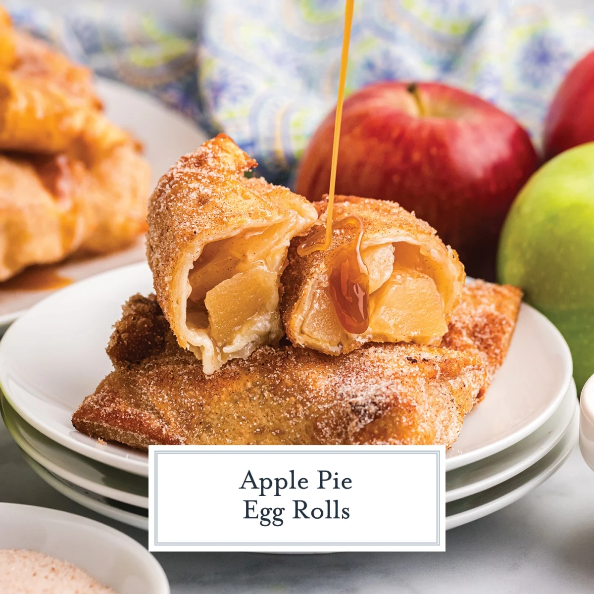 These Apple Pie Egg Rolls have a sweet apple filling with creamy brie all encased in crispy egg roll wrappers with a cinnamon sugar coating!