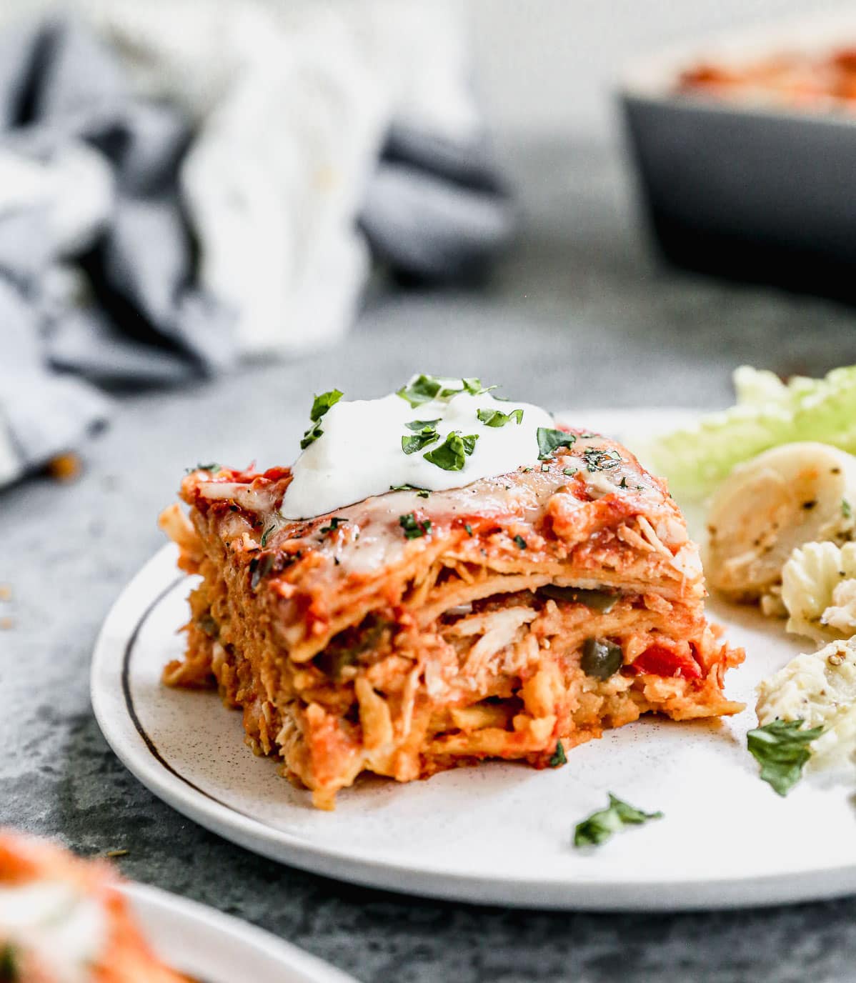 - Place one tortilla in a greased round 2-qt. baking dish; top with 1 cup meat mixture. Repeat layers fives times. Sprinkle with cheese. Bake, uncovered, at 350° for 25-30 minutes or until bubbly.