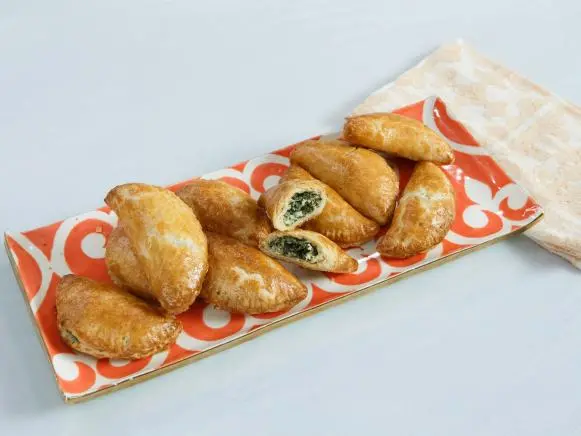 - Top each dough round with 1 to 2 teaspoons of filling, then fold in half to enclose to make the mini pies into half-moons. Seal the edges with a fork. Brush the top of each pie generously with the beaten egg.