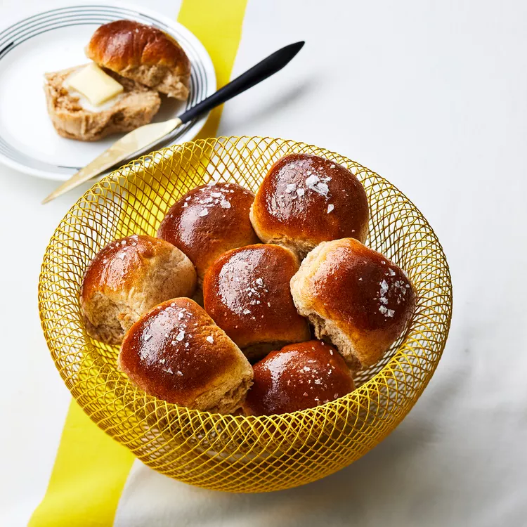 The slow cooker yields super-tender, pillowy whole-wheat rolls. If you prefer them crustier, arrange the finished rolls on a baking sheet, brush the tops with melted butter and sprinkle with flaky sea salt, if desired. Broil, watching carefully, until lightly browned, 2 to 3 minutes.