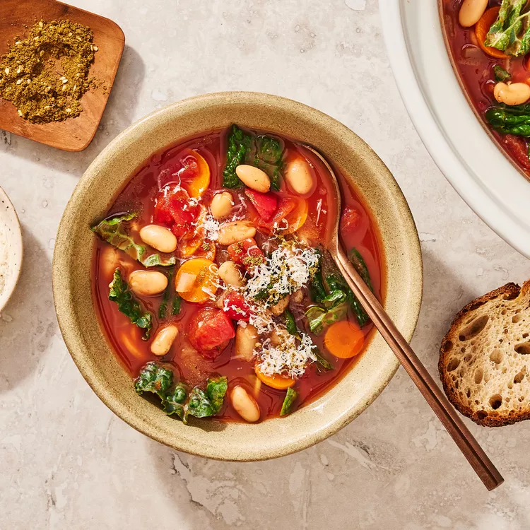 Warm up to a hearty bowl of soup made with winter vegetables and protein-rich white beans. Comforting spices like oregano and thyme build flavor, while Parmesan provides an irresistibly savory finish.